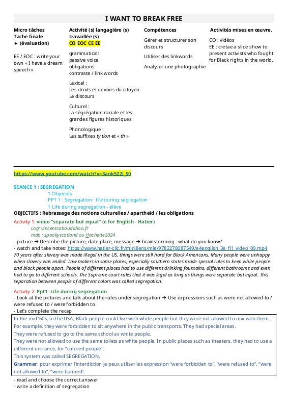 0 Scénario Pédagogique I Want To Break Free