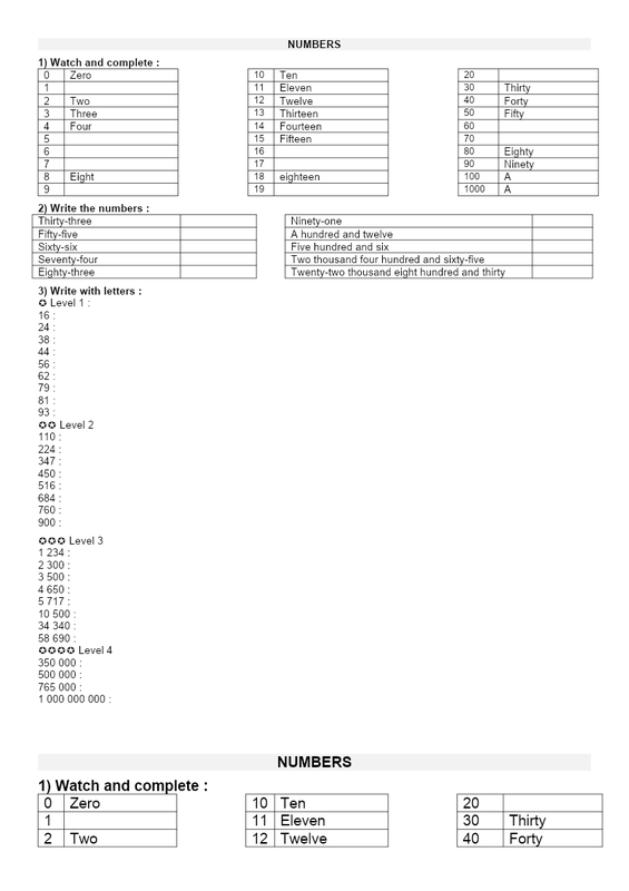 Ecris les nombres en lettres. teacherletang.jimdo.com