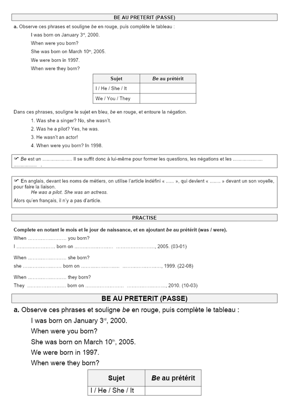 Grammar Le Prétérit De Be
