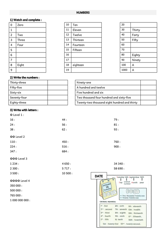 Ecris les nombres en lettres. teacherletang.jimdo.com