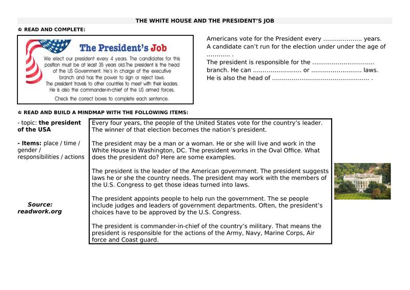 1 The President Of The Usa Mindmap