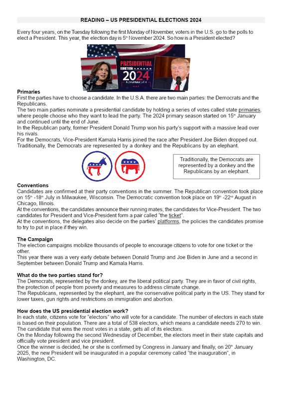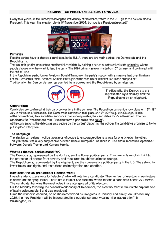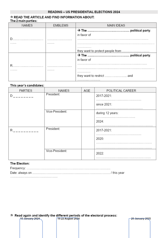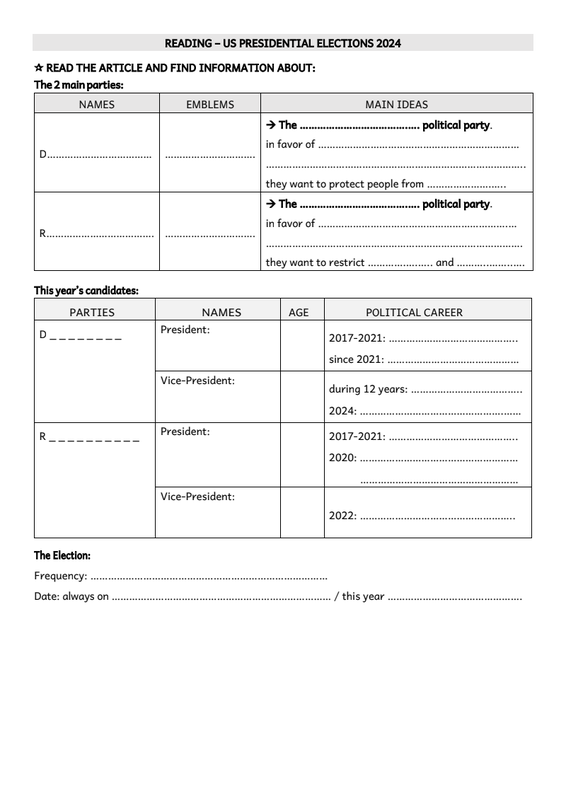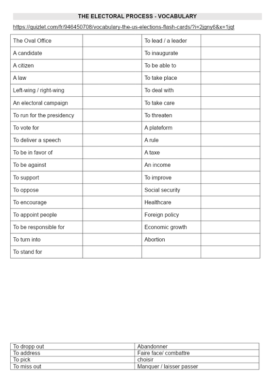 2 Ce Us Presidential Elections Worksheet Élèves