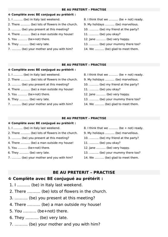 7 Exercice Be Au Preterit