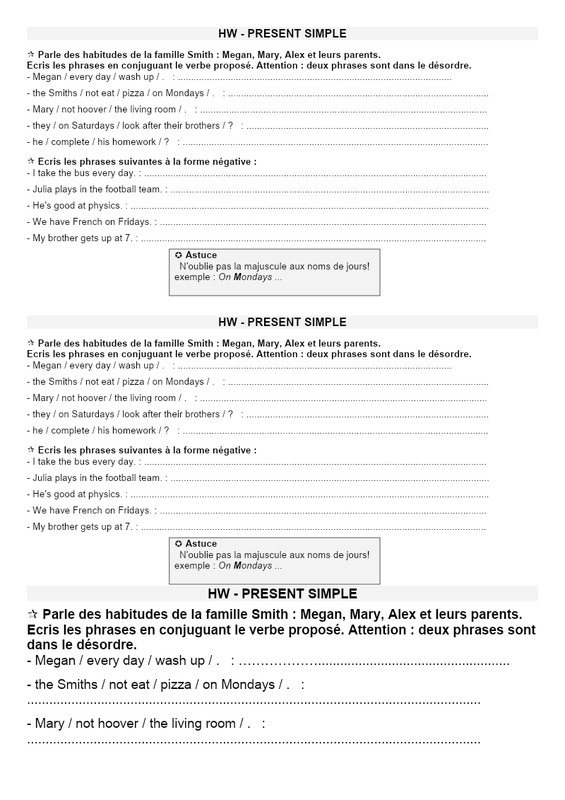 5 Hw Présent Simple