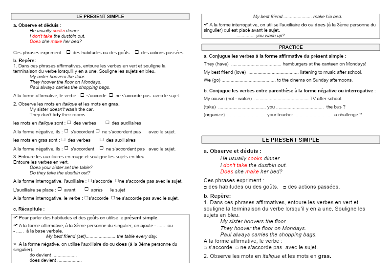 5 Grammar Présent Simple